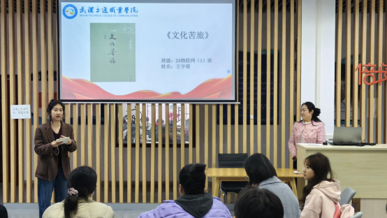 王宇萌同学起身说道:“我读的是《文化苦旅》,它以“文化苦旅”为魂,借山水古迹探寻中国文人跋涉足迹,融历史沧桑、文化反思与人生哲思于一体,深刻让我感受到中华文明的生命力与文化传承的使命感。”