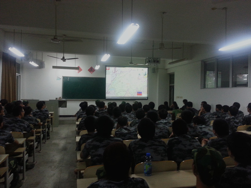 廖震峡、刘开文、饶卫民三位具有丰富国防教育经验的老师分别为新生讲授了中国国防、军事思想和世界军事系列军事理论讲座。教师们以国防基本理论、现代军事主要内容以及我国周边安全环境三个方面内容为主线向新生深入浅出的介绍了我国当前国防形势与政策、军事高技术的概念与分类、军事高技术对现代战争的影响等丰富的国防知识和理念。三位教师的讲授生动有趣,课件内容丰富详实,同学们表示受益匪浅.