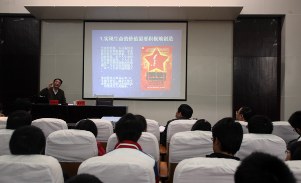 11月25日,湖北省人大科教文卫副主任张继年在行政楼二楼会议室为全院师生代表做了一场题为“在有限中追求无限”的专题报告。他从“站在生死高度,重审自我价值判断;以终点为起点,更加积极地创造生活”等四个方面讲述珍惜生命和人生价值。他的精彩宣讲,赢得了现场师生的阵阵掌声。
