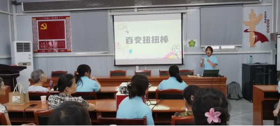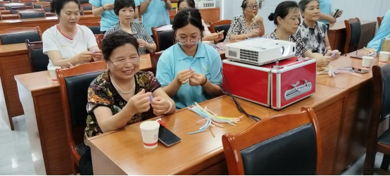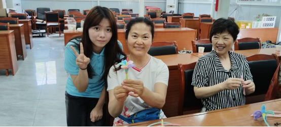 “您看,这样扭一扭,再绕个圈,花瓣的弧度就出来啦!”志愿者们半蹲在老人身旁,手把手演示着扭扭棒的技巧。72岁的李奶奶戴着老花镜,手指灵活地缠绕着粉色扭扭棒,不一会儿,一朵栩栩如生的粉色小花在她掌心“绽放”。她举起作品对着阳光端详,眼角笑出了细纹。李奶奶说“年轻时没空玩这些,现在倒返老还童啦!”