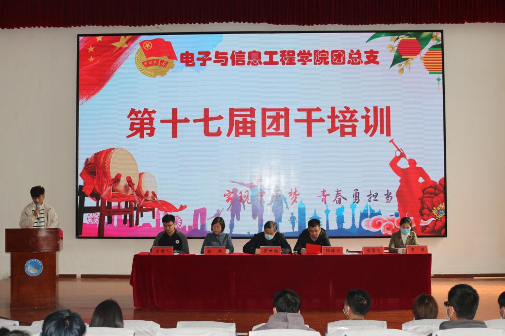 11月11日中午,电子与信息工程学院举行了第十七届团干培训开班仪式,学校副校长梁世翔、教务处处长兼学院思想导师团团长杨海澜、党总支书记徐静参加了开班仪式。开班仪式由学院团总支书记石临风主持。
