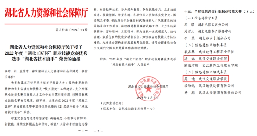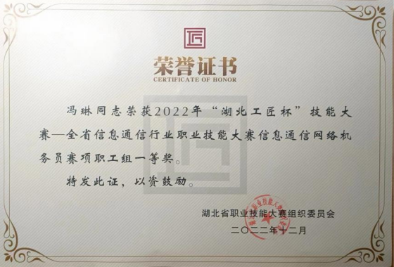 “湖北工匠杯”技能大赛通信网络机务员赛项职工组一等奖