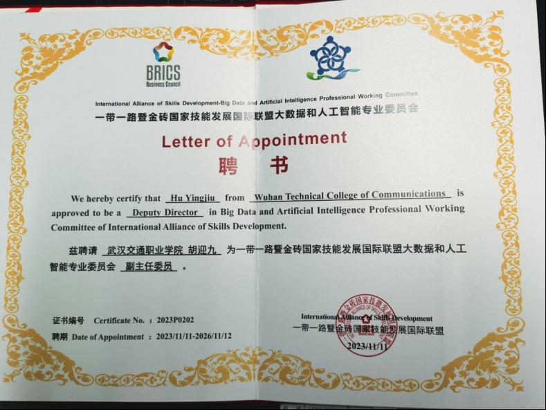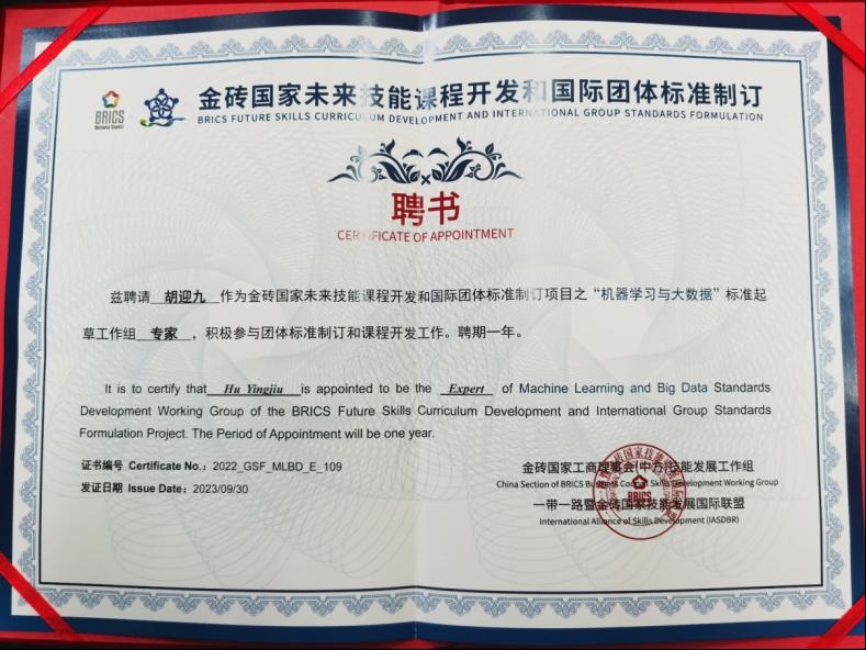 一带一路暨金砖国家技能发展国际联盟大数据和人工智能专业委员会副主任委员