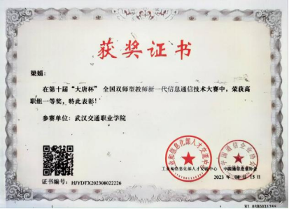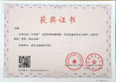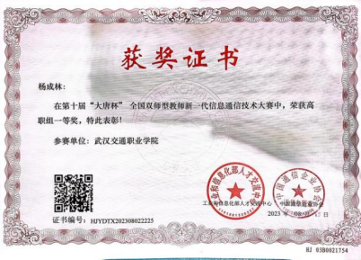第九届“大唐杯”全国双师型教师新一代信息通信技术大赛全国一等奖