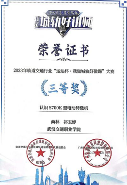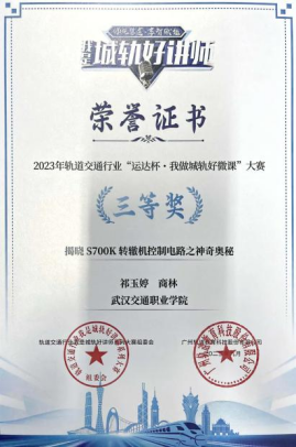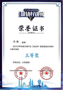 全国轨道交通行业“运达杯-我是城轨好讲师”全国三等奖 三、教师科研成果