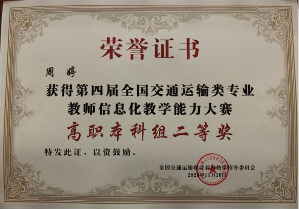 第四届全国交通运输类专业教师信息化教学能力大赛高职本科组二等奖